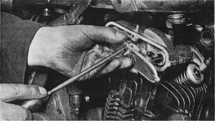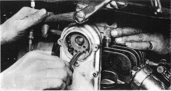 After slackening the pins under the magneto platform, lever with a screwdriver between the magneto and engine plates. No inspection hole and cover is provided with this model, but can be incorporated by the makers if required.