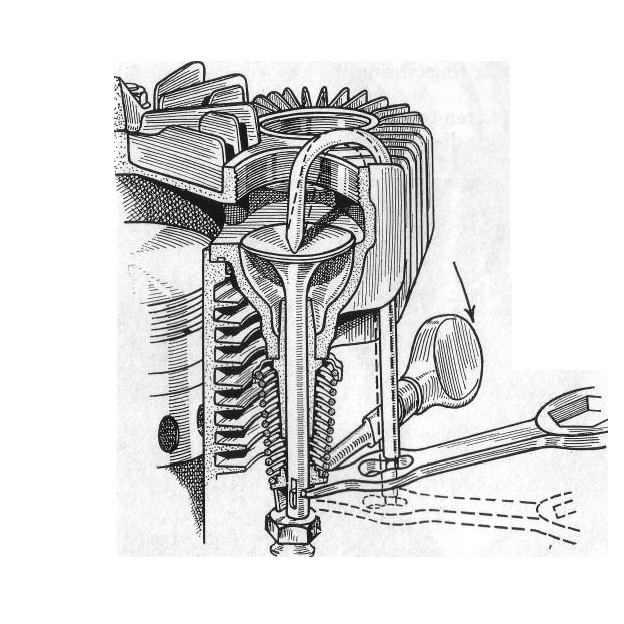 This illustrates how to use a screwdriver in conjunction with the valve extractor to prevent the valve cone from canting on the stem. If this is not done an undue strain is put on the tool, which becomes distorted, as indicated by the dotted lines, and so loses its effectiveness.