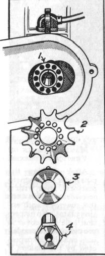 which has thirteen holes in a circle. Fitting over the collar on this sleeve is a magneto sprocket which has twelve holes similarly arranged.On both the engine and the magneto sprockets will be found an arrow. These must point to each other when fitted in the chain.